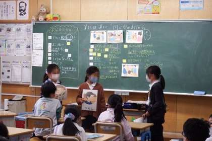 資料「同じなかまだから」を使って、道徳の学習を行いました。目標を誰に対しても分け隔てをせず、公平公正な態度で接することです。運動会に向けて、みんなで「台風の目」の練習に取り組む内容です。