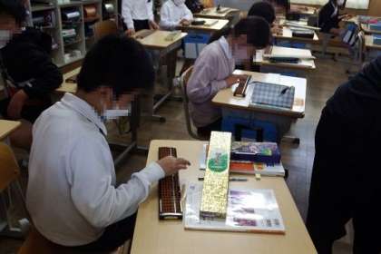 算数「そろばん」の学習を行いました。そろばんを使った数の表し方や計算に取り組みました。小数点を使った計算にもチャレンジします。