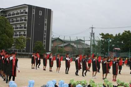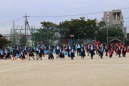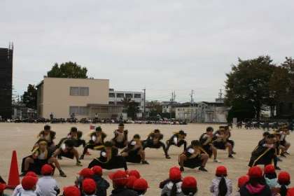体育発表会が近づいてきました。昨日は、子どもたち同士で、練習の成果を見あう校内発表会を行いました。自分たちの演技を真剣に演じたり、他の学年の演技に大きな拍手を送ったり、素敵な校内発表会になりました。体育発表会当日がますます楽しみになりました。写真は、6年生の演技の様子です。