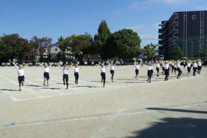 明日の体育発表会本番に向けて、各学年前日練習を行いました。明日に向けて、さらによい演技になるよう、修正をしたり、確認をしたりしました。今日が最後の練習とあって、子どもたちもいつも以上に真剣に取り組みました。写真は、2年生の様子です。