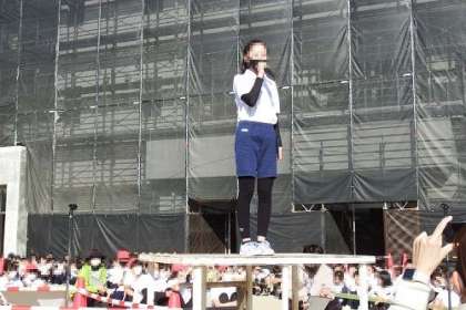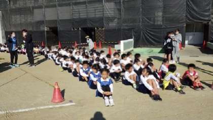 爽やかな秋晴れのもと、本年度の体育発表会を行いました。6年生の素敵な開会の言葉より、発表会が始まりました。スタートは3年生です。入場を前に、子どもたちは緊張気味です。