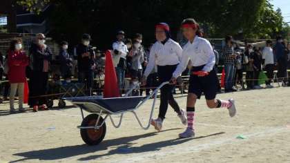 各学年とも徒競走やリレーを先に行い、後半はダンスや踊り、体操などを中心とした表現を行いました。どの学年も、今までの練習の成果を発揮し、素晴らしい発表になりました。演技終了後の子どもたちの満面の笑顔がとても素敵でした。写真は、5年生の様子です。