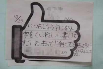 先週全校で取り組んだ3S大作戦。写真は、周りの友達の素敵なところを書いた3Sカードです。こんなカードをもらえたら、心が温かくなりますね。2年生では、みんなの3Sカードを掲示して紹介をしていました。
