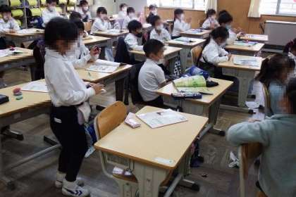 「せんりつをつくってあそぼう」の挑戦。タン・タン・タン・うんや、タタ・タタ・タタ・うんに合わせる単語を見つけます。すいかやどんぐりさん、さくらんぼ、あさがおさんなどたくさん言葉を見つけられました。