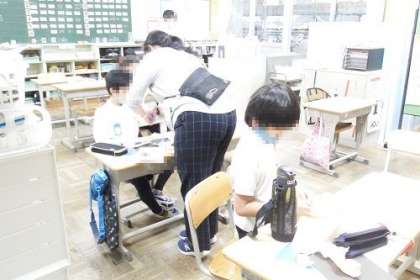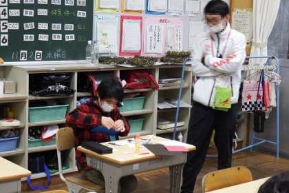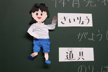 図工で「体育発表会の自分」を作成しました。画用紙を使って、ちぎり絵にしていきます。ちぎった個所や紙の折れ目が、とてもよい風合いになっています。自分をイメージして素敵な作品に。
