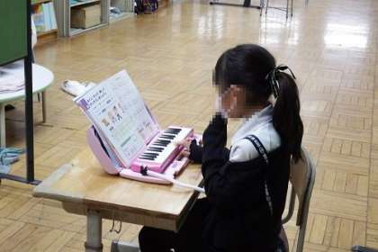 音楽「山のポルカ」をピアニカで演奏してきました。この日は、テストです。一人ひとり緊張しながら演奏してきました。練習してきた成果がばっちりあらわれていました。