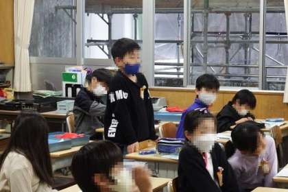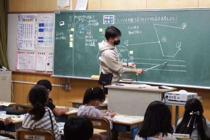 算数「円と球」の学習で、コンパスを使って長さを比べる問題に取り組みました。コンパスで、それぞれの長さを直線に写しとって比べるとよいことを知りました。
