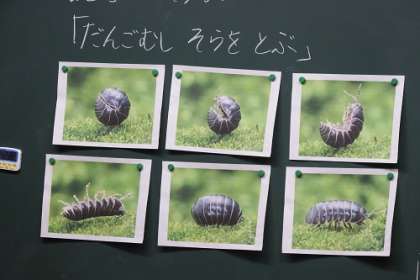 読書感想画「だんごむし そらをとぶ」の学習を進めています。いろんな姿のだんごむしの写真を見ながら、想像をふくらませます。空を飛ぶたんごむしって・・・。