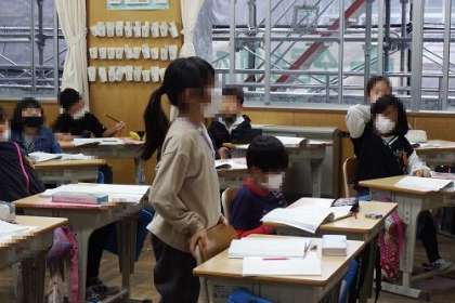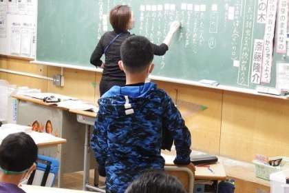国語「モチモチの木」で、中心人物の豆太は弱虫なのか、二場面から読み取りました。物語の冒頭には、「全く、豆太ほどおくびょうなやつはいない」と記述してある。さて、本当の豆太は・・・。机に顔を伏せてイメージをふくらませます。