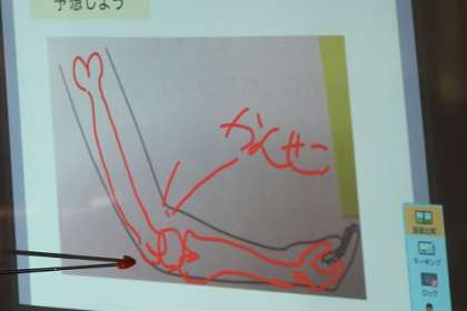理科「わたしたちの体と運動」の学習に入りました。この日は、うでのほねはどのようなつくりになっていて、どのように動くのか考えました。ほねとほねのつなぎ目で、体が曲がるところを関節ということを知りました。