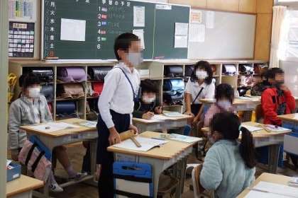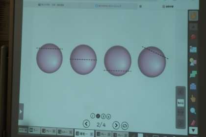 算数「円と球」の学習です。この日は、球について考えました。球とは、どこから見ても円に見える、ボールのような形です。さて、その切り口は?