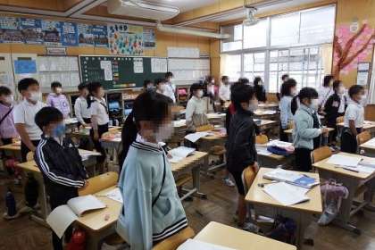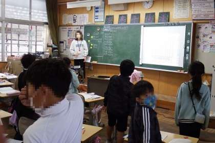 算数「かけ算」で、九九の学習が進んできます。みんなで、一斉に九九の練習を声に出しあて行ったり、タブレットを使って早押しクイズを行ったり。いよいよ検定にも取り組んでいきます。