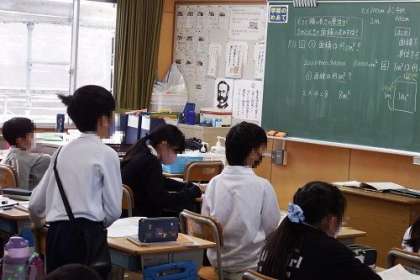 算数「面積」の学習を進めています。この日は、たてと横の長さの単位がちがう時の面積を求める問題に取り組みました。面積を求めるときは、長さの単位をそろえることに気がつきました。