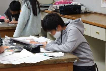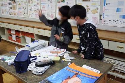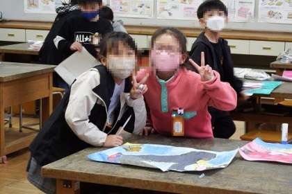 読書感想画「ナイチンゲールのうた」が完成しました。完成した自分の作品を見ながら、みんな満足そうです。これから、友達の作品のよい所もたくさん見つけてくださいね。