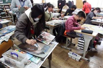 図工で取り組んでいる読書感想画「セロ弾きのゴーシュ」最後の仕上げです。子どもたちが真剣に取り組んで描いた作品が出来上がりました。