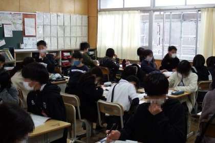 国語「町の幸福論」について学習に取り組みました。この単元では、情報を関係づけて活用することを目標にしています。この日は、資料の効果について考えました。