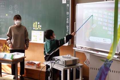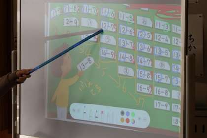 算数「ひきざん」の学習で、ひきざんカードでなかま集めをしました。カードの並び方から、隠されたひき算のカードを予想します。どんなきまりを見つけられたかな。