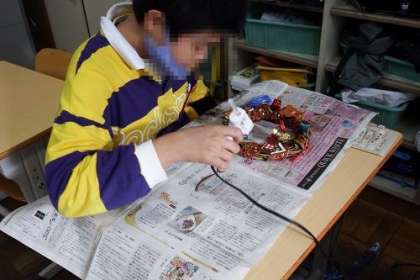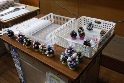 リースづくりを継続しています。自分にリースにピッタリな飾りを選んだり、まつぼっくりで飾りを作ったり。集中して取り組んでいる姿が印象的でした。