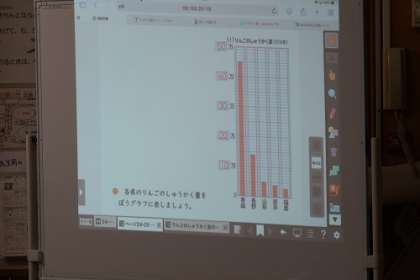 算数「がい数とその計算」の学習の様子です。この日は、がい数を使って、ぼうグラフに表す学習に取り組みました。ぼうグラフに表すと、傾向がよくわかります。