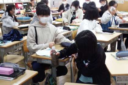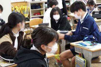 理科「土地のつくりと変化」の学習で、地層がどのようにできるのか考えました。ペットボトルに土と水を入れて混ぜた後、静かに置いていくと・・・。
