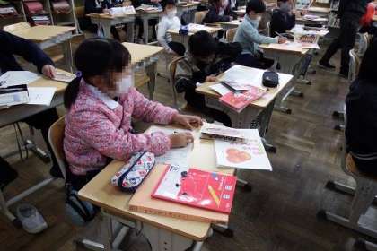 国語の学習で、食のリーフレットづくりに取り組んでいます。伝わりやすく工夫するために、事例を使ったり、理由を書いたり、見出しを作ったりするとよいことを学びました。