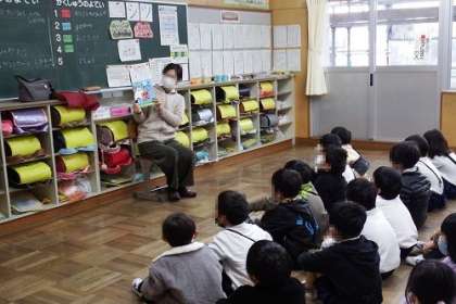 本年最後の読み語りでした。プチボラみやま隊の皆さんの語りを食い入るように聞く子どもたち。素敵な時間を共有できました。新年からもよろしくお願いいたします。