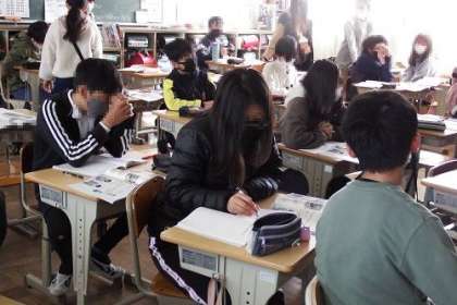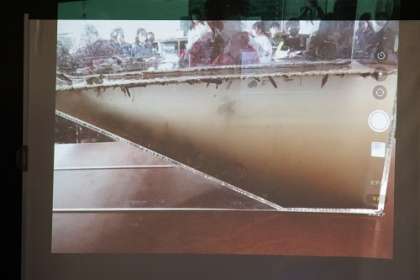 理科「土地のつくりと変化」の学習で、地層がどのようにできるのか考えました。流れる水の働きと地層のでき方を実験で確かめました。