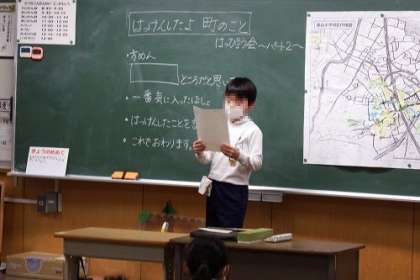 学区探検のまとめとして、「はっけんしたよ 町のこと」発表会を行いました。自分が気が付かなったことも友達の発表からたくさん分かりました。美山学区を知るよい機会となりました。