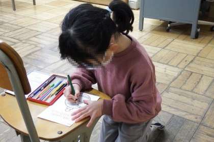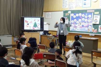 1年生で、英語の学習を行いました。この日は、クリスマスにちなんだ楽しい授業でした。子どもたちは、もらったクリスマスカードに色をぬって、素敵に仕上げていました。