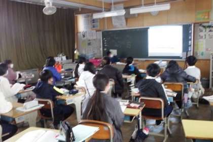 理科「土地のつくりと変化」の学習の様子です。火山活動や地震による土地の変化について考えました。富士山の火山活動によりどのような変化が起きたのか、ビデオ映像を見ました。