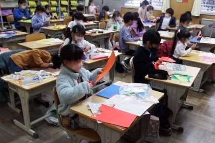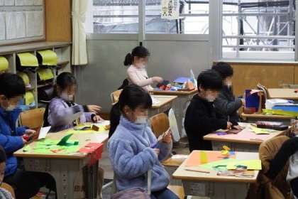 図工「おってたてたら」の作品作りが、各クラスで進んでいます。友達の作品のよい所もとり入れながら、夢の町を仕上げていきます。