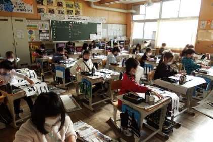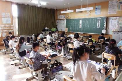 どの学年も、どのクラスも、集中して取り組み子どもたちの姿がありました。3年生は、「げんき」の文字を毛筆で書きました。