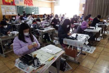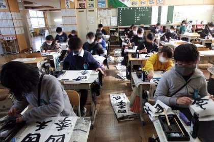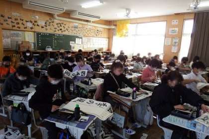 どの学年も、どのクラスも、集中して取り組み子どもたちの姿がありました。5年生は、「四季の風」の文字を毛筆で書きました。