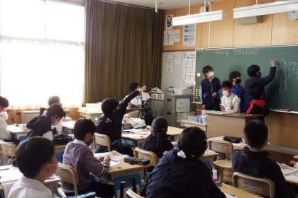 資料「交かんメール」を使って、道徳の学習を行いました。北海道の小学校と交換メールで、学校の様子や学級のよいところを伝えることになりました。この日は、学級のよさをみんなで話し合いました。