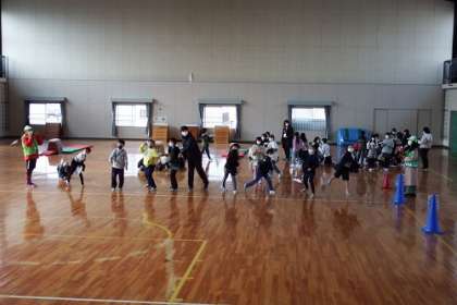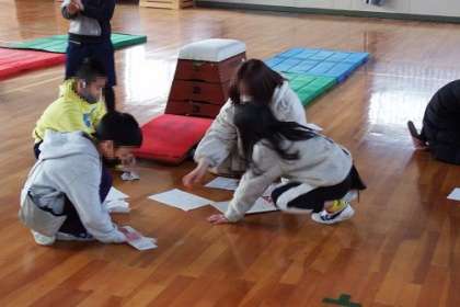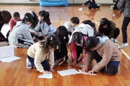 イベントママさんの企画「紙飛行機をとばそう」が始まっています。この日は、3年生の順番でした。きらきらタイムに体育館へ集まり、紙飛行機を飛ばしていきます。中には、体育館の半分近くまで飛ぶ子も。