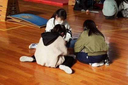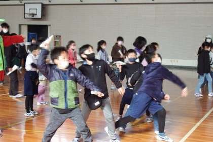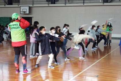 イベントママさんの企画「紙飛行機をとばそう」が始まっています。この日は、3年生の順番でした。きらきらタイムに体育館へ集まり、紙飛行機を飛ばしていきます。中には、体育館の半分近くまで飛ぶ子も。