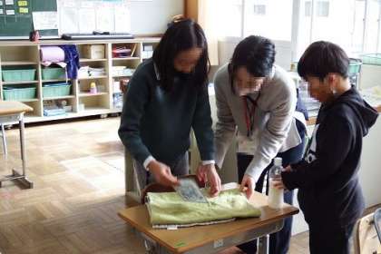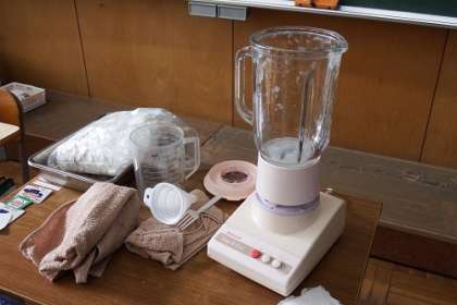 「紙づくり」を行いました。細かく刻んだ紙を集め、紙の形をつくり、水分を吸い取ります。素敵な紙ができあがりました。さて、何を書こうかな。
