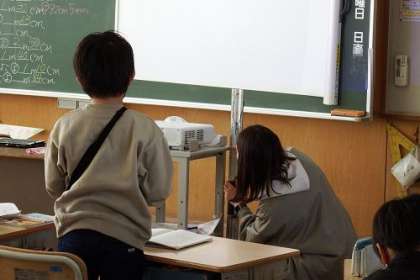 算数で「100センチメートルをこえる長さ」を学習しています。両手を広げた長さから1メートルを学びました。教室のいろいろなところの長さをはかることもできます。