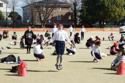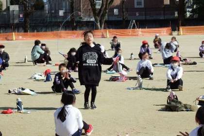 各学年でなわとび大会を実施しています。写真は、3年生の様子です。持久跳びを3分間やり続けられた子には、みんなから大きな拍手が起きていました。
