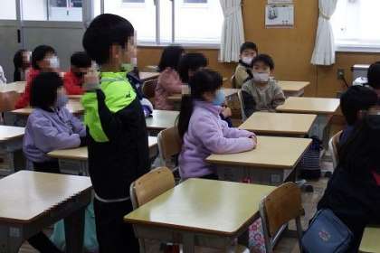 資料「やめろよ」を使い道徳の学習を行いました。きつねのこんきちは、いつも意地悪をしています。この日も学校の帰り道でうさぎのぴょんこに意地悪をしていました。そこにたぬきのポンタが通りかかり、大きな声で言いました。「意地悪はやめろよ!」よいことと悪いことを区別し、よいと思うことを進んで行うことがねらいです。