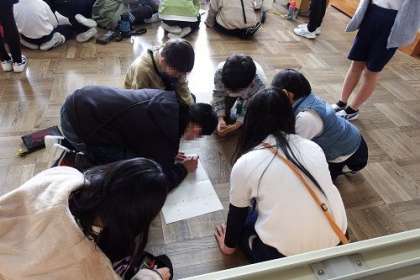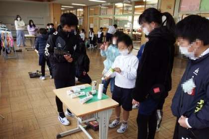 的当てゲームや絵しりとり、新聞を使った文字探し、福笑い、宝探し、ビー玉運び、紙コップ積み・・・・、子どもたちのアイディアあふれるゲームやクイズが、校内のあちこちで行われました。みんなの笑顔があふれる時間となりました。