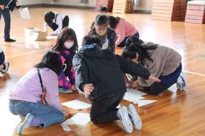イベントママさんによる「紙飛行機をとばそう」の企画が行われました。この日は、5年生の順番です。きらきらタイムになると、たくさんの子どもたちが体育館に集まってきました。自分が作った紙飛行機がとんでいくのがとても嬉しそうでした。