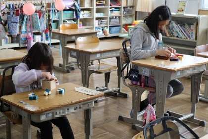 今日から本年度最後の学校参観日が始まりました。子どもたちの学習に取り組む様子を観ていただきました。ご来校の保護者の皆様、ありがとうございます。写真は、7・8・9・10組で、日生の時間にあかね積み木などに取り組んでいる様子です。