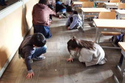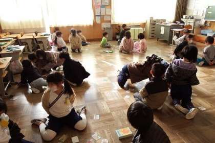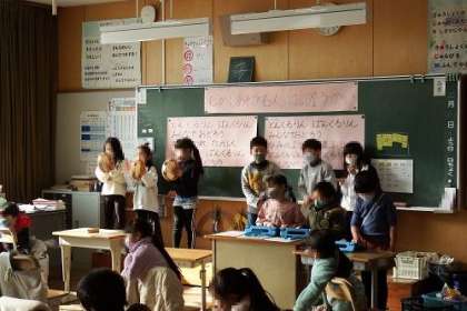 地区別学校参観日2日目。今日も多くの保護者の皆様にご参観いただきました。ありがとうございました。写真は、1年生が「昔遊び名人になろう」の発表を行っている様子です。おはじきやカルタ、だるま落とし、コマ、演奏発表など練習の成果を発揮することができました。