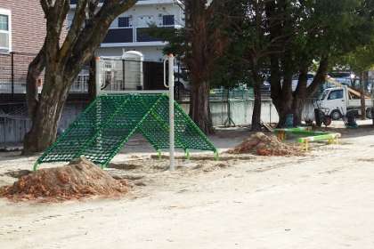 今まで使われていた遊具が、より安全性の高い遊具に交換されます。現在、既存の遊具を撤去し、新しい遊具が運び込まれています。設置に向けて準備が進んでいます。使用できる日が来るのが待ち遠しいです。