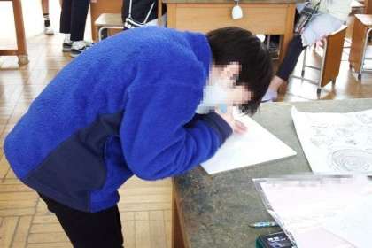図工で版画の下絵を描きました。テーマは宇宙です。主役を決めて大きく描いていきます。どこまでも広がる大きな宇宙が表現されることでしょう。
