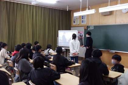 6年生が逢妻中学校の生徒と交流しました。6年生の各クラスで逢妻中学校の教室をリモートでつなぎ、逢妻中学校での生活で疑問に思っていることや聞きたいことを一人一人質問していきました。学習や部活、中学校での生活など、優しく丁寧に答えてくれた中学生の皆さん、ありがとうございます。漠然ともっていた中学校生活への不安が晴れてきたように思います。