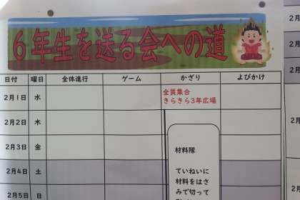 3月に行う6年生を送る会の準備がスタートしています。各学年で出し物を考え、お世話になった6年生にありがとうの思いを伝えていく予定です。きっと思いのこもった温かい会になるはずです。