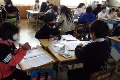 「形をかえると、ものの重さはどのようになるのか」ねん土や紙の形を変えて、実験です。丸めたり、のばしたり、小さく分けたり・・・。その結果は、形が変わっても、ものの重さは変わりません。