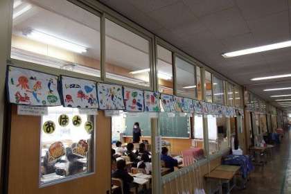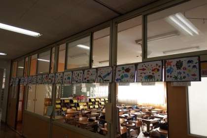 1年生がつくった版画を教室に掲示しました。印刷も上手にでき、とてもきれいに色が出ています。教室が、普段以上に明るく楽しくなったような気がします。